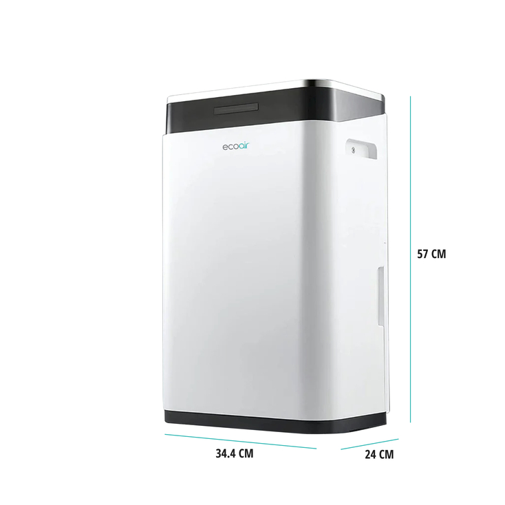 Des résultats de séchage parfaits avec les déshumidificateurs EcoAir DC Élégants et dotés de nombreuses fonctions, les déshumidificateurs EcoAir DC sont synonymes de classe et de performances. La commande LED précise est claire et permet de contrôler facilement le niveau d'humidité dans votre maison ou sur votre lieu de travail. Leur surveillance et leur commande intelligentes garantissent des résultats de séchage parfaits. Panneau de commande élégant avec fonctions étendues Le panneau de commande tactile de l'EcoAir DC26 est clair. Toutes les fonctions sont rapidement accessibles et l'écran affiche le taux d'humidité dans la pièce. Diverses fonctions soulignent la facilité d'utilisation. Réglez l'hygrostat numérique sur le taux d'humidité souhaité, utilisez sa minuterie pour régler les heures d'activation et de désactivation, ou activez le mode veille pour un fonctionnement discret pendant la nuit. Sa fonction de verrouillage enfant bloque les touches afin que les réglages ne puissent pas être modifiés sans surveillance. L'EcoAir DC26 offre la flexibilité de deux vitesses de ventilation et donc la possibilité de réduire la consommation d'énergie et le bruit en mode faible. Indicateur d'humidité à 3 couleurs L'EcoAir DC26 affiche clairement sur sa face avant le niveau d'humidité dans la pièce. Bleu : indique une humidité ambiante faible, inférieure ou égale à 45 %. Vert : indique une humidité ambiante confortable, comprise entre 45 % et 65 %. Rouge : indique une humidité élevée, supérieure à 65 %. L'indicateur montre la vitesse à laquelle le déshumidificateur sèche jusqu'à ce que des conditions saines soient atteintes. L'indicateur reste rouge ? Dans ce cas, réglez le déshumidificateur sur une humidité plus faible. Visez un taux d'humidité sain compris entre 45 % et 65 %. Fonctions automatiques Le DC26 indique « Réservoir plein » et s'éteint lorsque le réservoir de collecte est plein. Cet appareil dispose également d'un redémarrage automatique, ce qui est pratique en cas de coupure de courant. Cette fonction active un redémarrage automatique lorsque l'alimentation électrique est rétablie, en conservant le réglage précédent. Lorsque le réservoir d'eau est plein ou retiré, les commandes sont désactivées. Caractéristiques du déshumidificateur EcoAir DC26 Vitesse d'extraction maximale : 26 litres/jour Capacité du réservoir d'eau de 6,5 litres Option d'évacuation continue, tuyau inclus Panneau de commande tactile convivial Hygrostat Régulation rapide de l'humidité et séchage du linge à l'intérieur Dégivrage automatique Contrôle la formation de moisissures, de condensation et de bactéries Roulettes « Easy Glide Filtre à charbon lavable